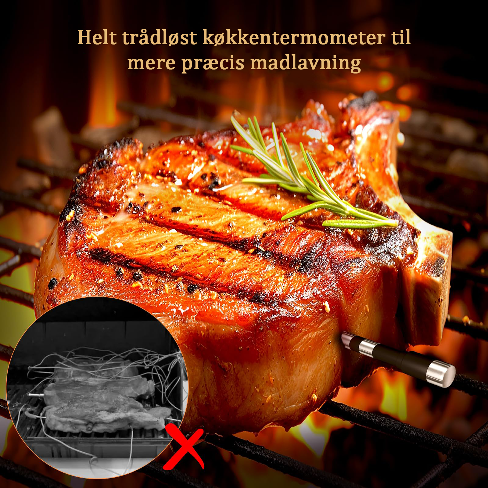 IP67-vandtæt med intelligent temperaturalarm, varmebestandig sonde og præcis temperaturmåling.